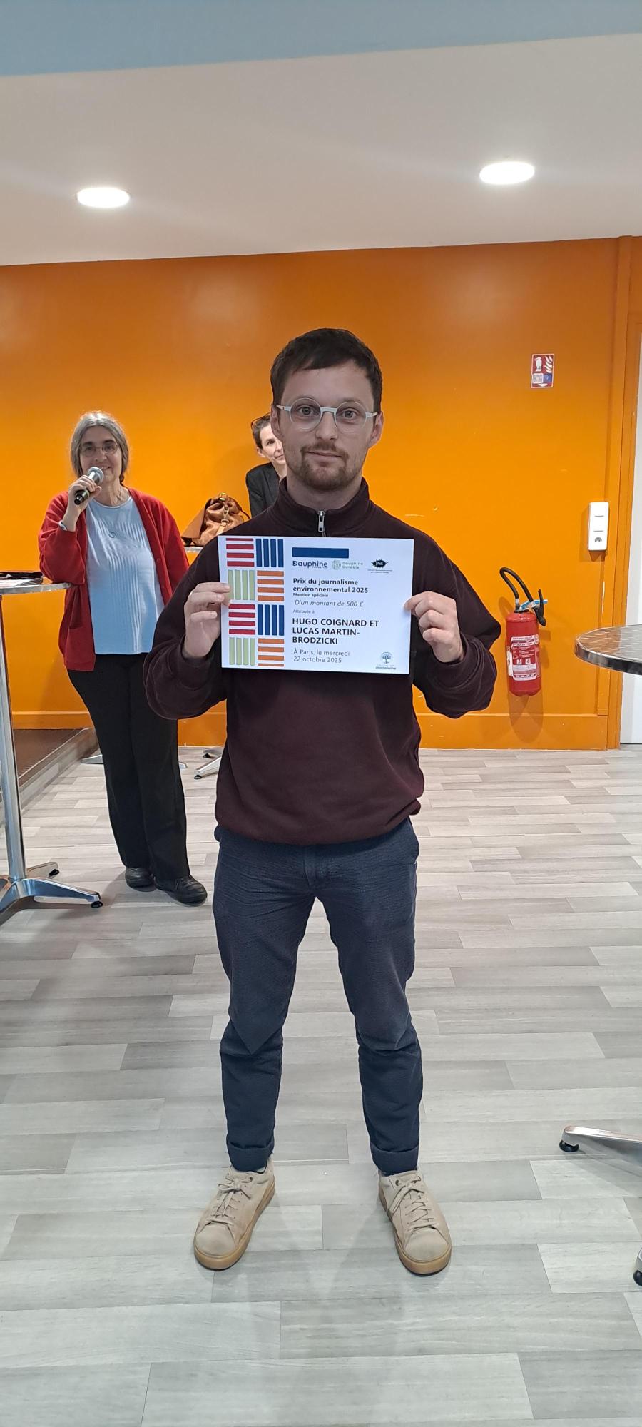 Le Prix du journalisme environnemental a été attribué à Hortense Chauvin pour son article Elargir la Seine, ou la mise à mort d’une cathédrale du vivant, écrit pour Reporterre, saluant ainsi la qualité de son écriture et de son enquête (lire ici). Un prix d’un montant de 1000 euros lui a été décerné.