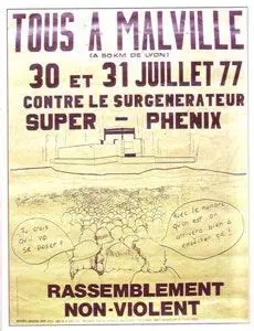 1974 : le plan Messmer (du nom du Premier ministre de l’époque) lançait autoritairement la construction du parc français de centrales nucléaires : « Aucune consultation de la population, décisions imposées par la force, l’industrie nucléaire porte depuis lors la marque de l’opacité et du coup de force totalitaire ». Un mouvement de contestation d’envergure internationale et qui ne cessera de grandir lors de cette décennie, se développe alors accompagné d’un symbole qui restera célèbre sous la forme d’un soleil souriant accompagné par la phrase : « Nucléaire ? Non merci ». Dans les projets, un surgénérateur, capable, en principe, de produire son propre combustible est imposé. Il sera dénommé avec beaucoup de prétention Superphénix et localisé dans le nord du département de l’Isère à proximité de Morestel. Alors que des manifestations antinucléaires éclatent en divers endroits dont Fessenheim en Alsace, un mouvement se crée à Grenoble et dans les villes environnantes pour lutter contre Superphénix et ses dangers potentiels, avec notamment la production de plutonium comme combustible et l’utilisation du sodium comme réfrigérant ! Un tel mouvement deviendra rapidement international et se concrétisera par au moins deux actions phare : une première manifestation/occupation en 1976, assez vite réprimée (l’année de la pose de la première pierre), puis la grande manifestation du 31 juillet 1977 avec plusieurs dizaines de milliers de participants (au moins 50 000), manifestation qui devait se conclure par un mort, Vital Michalon, plusieurs amputations et une centaine de blessés, a minima. Lors de cette journée, plusieurs cortèges s’étaient élancés en différents points. Nous marchions en direction du chantier sur une petite route au moment de rentrer dans la zone interdite décrétée par les autorités. Nous devions être plusieurs centaines dans notre groupe lorsque les gardes mobiles nous ont bloqué le passage, nous intimant l’ordre de nous disperser et repartir. Un cortège entièrement pacifique qui, devant l’injonction, décide de s’asseoir, plutôt que d’obéir. Une fois les sommations passées, nous avons vu les gardes mobiles se rapprocher et tenir leur fusil de manière à s’en servir comme de matraques. Étant assis au troisième ou quatrième rang, j’ai vu des copains et copines apeuré-es se faire frapper à coup de crosses et de matraques. Un camarade à mes côtés a reçu un coup sur la tête. Une violence incroyable accompagnée de commentaires totalement mensongers issus de l’autorité auprès des quelques médias de l’époque Une violence policière qui se traduisit par un terrible bilan.