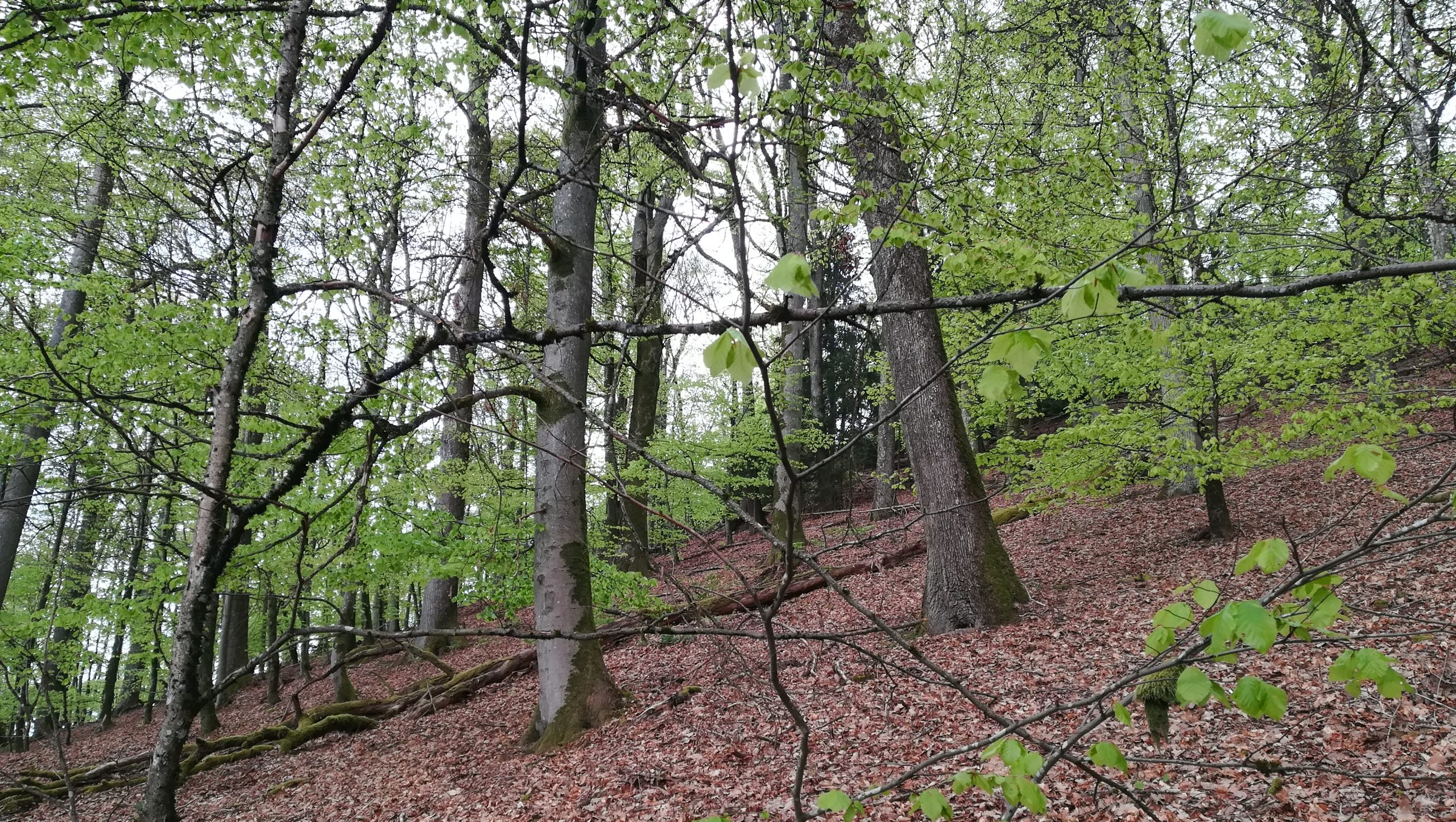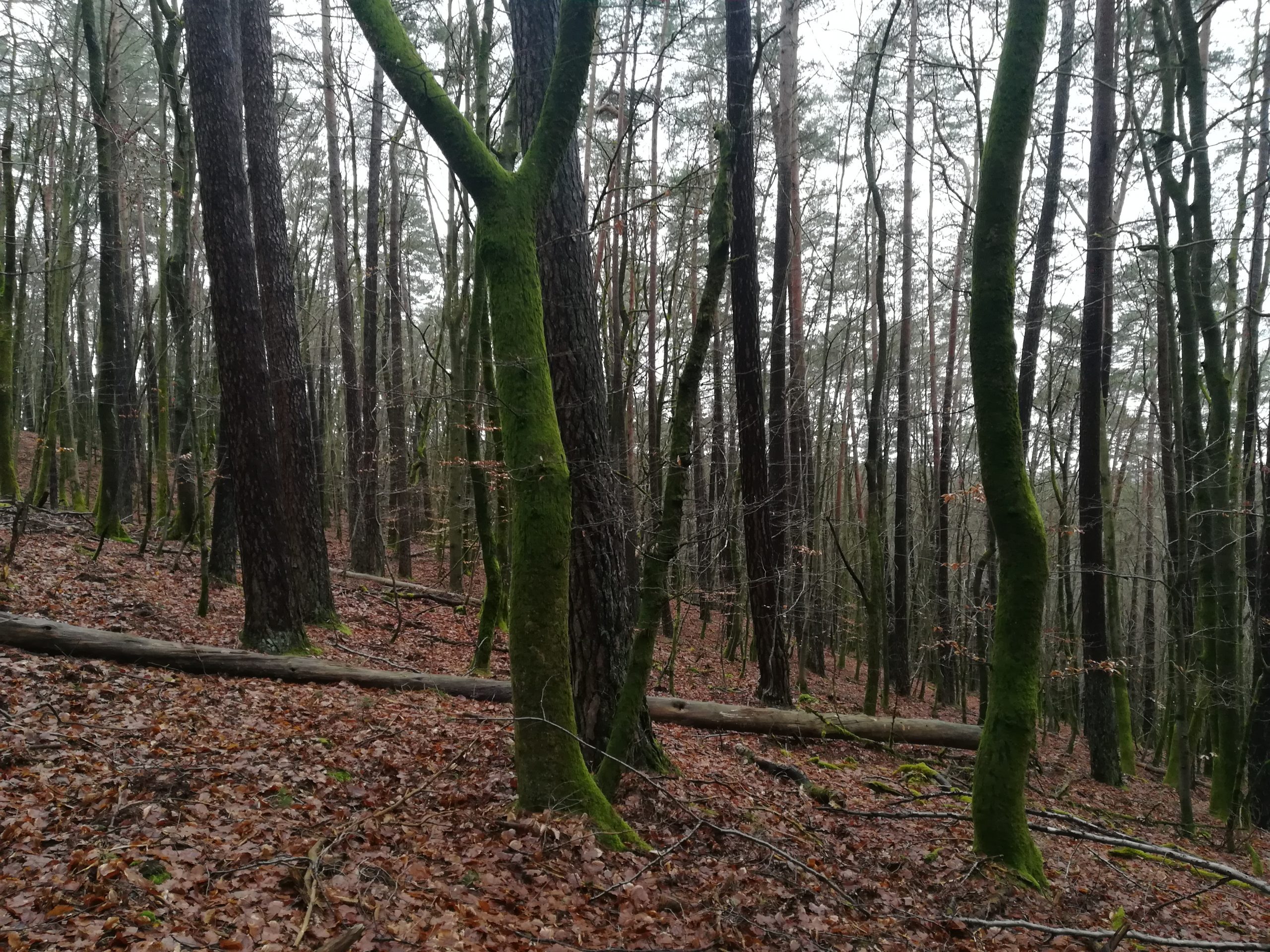 Cet îlot est donc relativement jeune, composé d’arbres de diamètre moyen (entre 30 et 45 cm de diamètre). Le peuplement est relativement dense et s’explique sans doute par le manque de desserte pour exploiter les bois. En dehors du pin et du hêtre, d’autres espèces plus dispersées sont présentes comme l’épicéa, le chêne et le charme. Il y a un peu de bois mort sur pied et au sol : épicéas atteints par les scolytes, bouleaux et pins. Il y a quelques gros hêtres en bas de pente. Cet ILS n’a clairement pas été choisi dans un peuplement mature et ne dispose pas de nombreux micro-habitats compte tenu de l’absence de très gros hêtres, espèce qui en fournit le plus dans les forêts des Vosges du Nord. A ce jour, cet îlot de sénescence est le plus grand en forêt communale et domaniale des Vosges du Nord. Toutefois, il existe deux zones en évolution naturelle (classée hors sylviculture dans l’aménagement forestier) de 36 et 38 ha dans la forêt du Fleckenstein, propriété de la Région, située elle aussi dans les Vosges du Nord.