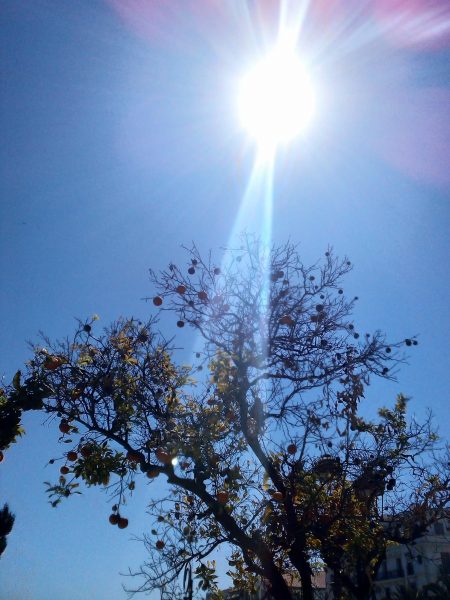 Photo : le Soleil dans le ciel d’Alger, qui illumine un bigaradier, connu aussi sous le nom d’oranger amer ou d’oranger de Séville. L’Algérie bénéficie d’un ensoleillement qui varie de 2600 heures/an dans le nord à plus de 3500 h/an dans le sud © M’hamed Rebah