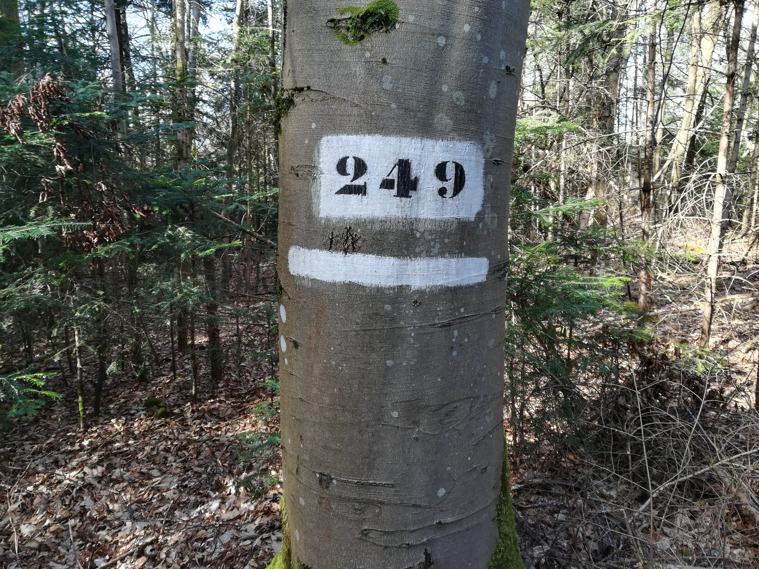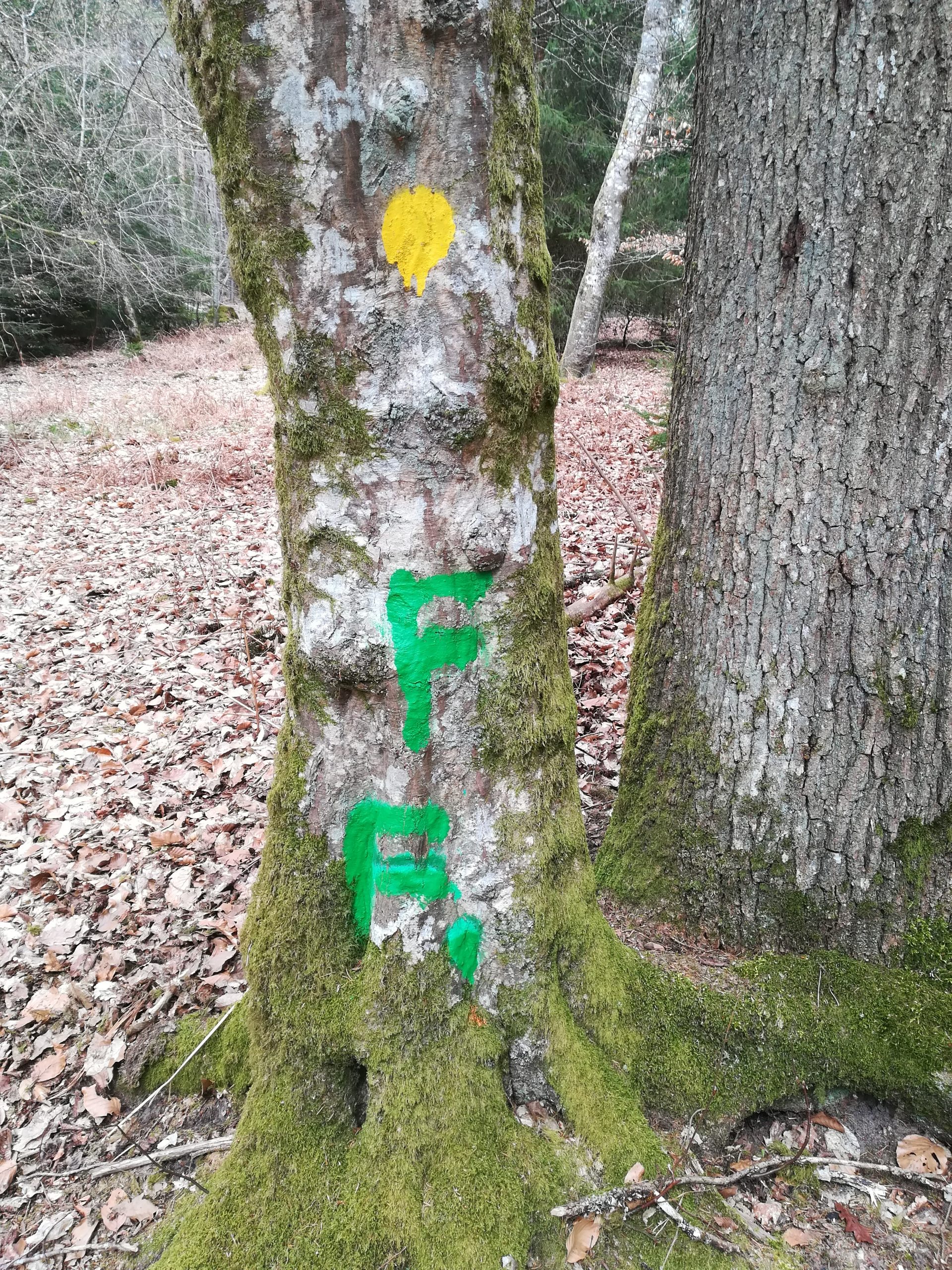 Mais la peinture a un défaut, elle n’assure pas un marquage pérenne et s’efface avec les intempéries. Si ce n’est pas un problème pour les arbres à couper, c’est plus gênant pour ceux qui doivent être conservés ou pour des îlots de sénescence dont la délimitation est importante par rapport aux exploitations voisines. Avec l’usage de la peinture, les arbres à protéger ou arbres « bios » étaient désignés par une marque faite à l’aide d’une griffe, visible durant des décennies, surtout sur des écorces fines comme celle du hêtre, principale espèce recrutée pour les arbres « bios ». La manipulation d’une bombe de peinture est d’une telle facilité que l’on peut en user et en abuser dans la gestion quotidienne.